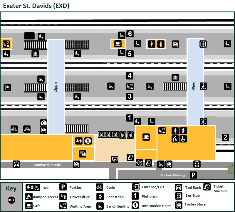 The lift on platform 1 is currently out of order at Exeter St Davids station.