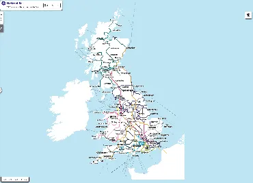 This map is an interactive and zoomable version of the entire National Rail network in Great Britain. It shows all lines, all stations and all Train Company routes that serve them.